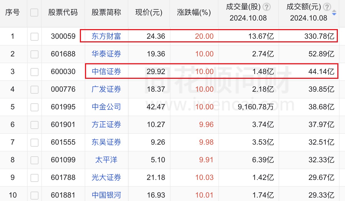 市场连板数不胜数,目前还是大金融相关最强。证券再次集体涨停。基本所有证券开盘一字。中信证券开盘委买136亿。大容量东方财富成交330亿,中信证券44亿。