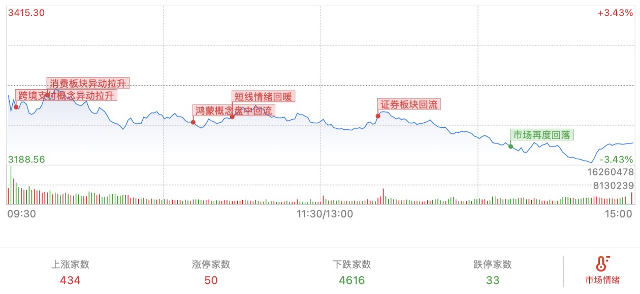 24.10.11,星期五,继续下杀继续和按钮。三大指数震荡走弱,成交1.5万亿,缩量27%。