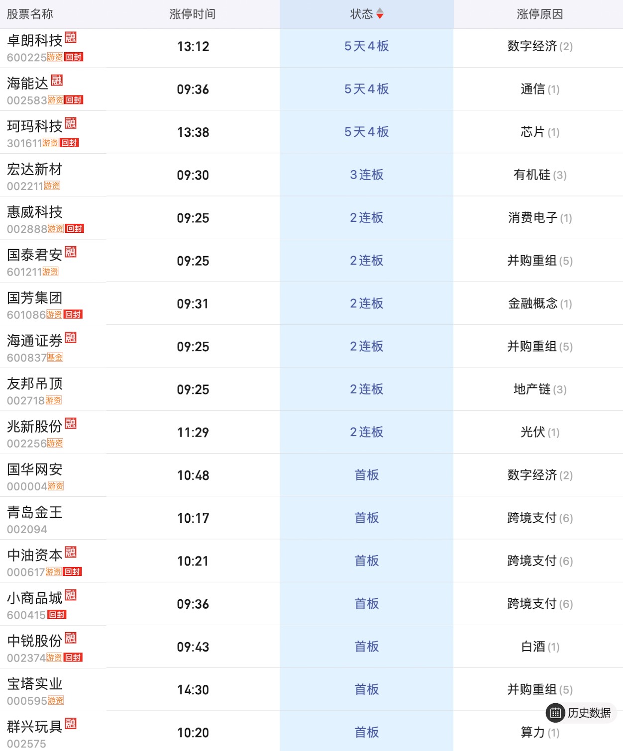 从连板上看,2板比较分散,最高3板只有宏达新材。宏达新材pk掉泰尔股份,两个都是神经网络。目前看,退潮期的中位股都不太好接力。应该从首板中选。首板中目前最强的就是跨境支付。中军中油资本,低位的小商品城。