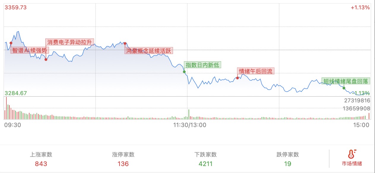 指数全天走弱,题材强度一般,今天高标全部断板。尾盘进一步恶化。鸿蒙常山北明多次炸板,并购重组的双成药业、文一科技、芯片上海贝岭等多股大幅回落。华立股份、川润股份炸板,恒银科技天地板。