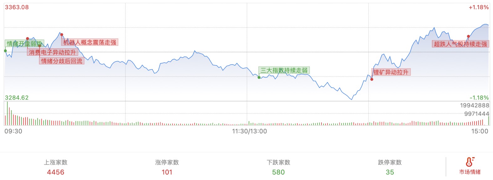 24.11.19,星期二,三大指数深V转折。成交1.5万亿,缩量12%。上涨超4000家,也可是一个超跌之后的反抽,比较整体市场还是缩量。
