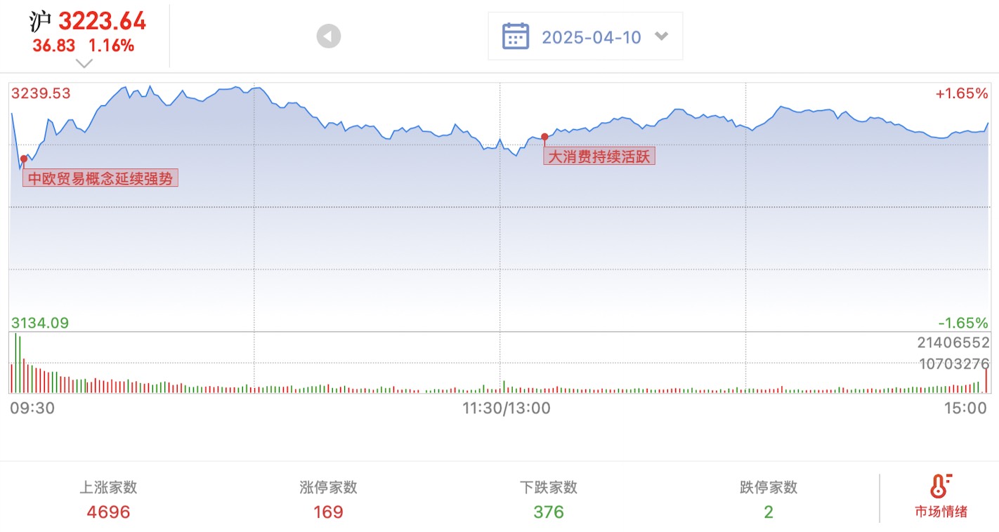 24.4.10,星期四,三大指数强势震荡,两市成交1.6万亿,较昨日放量5%。